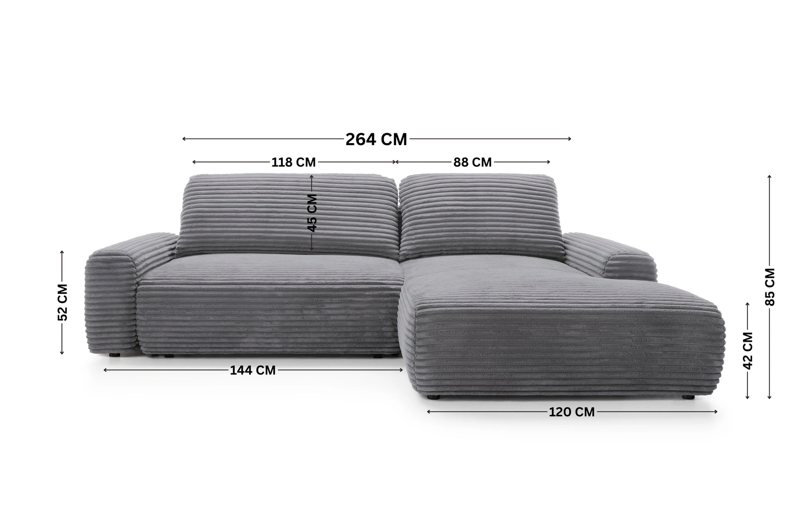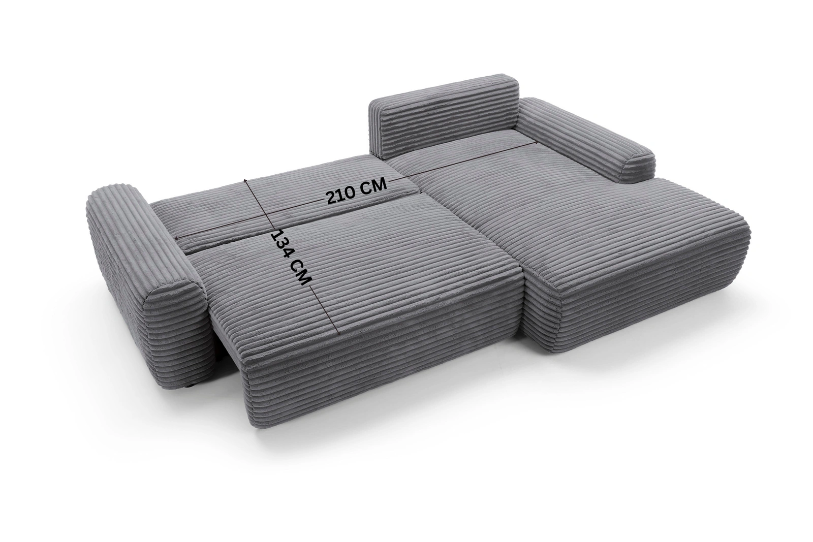 Narożnik sztruksowy z funkcją spania VIGO Ambience 19 Grafit pojemnik