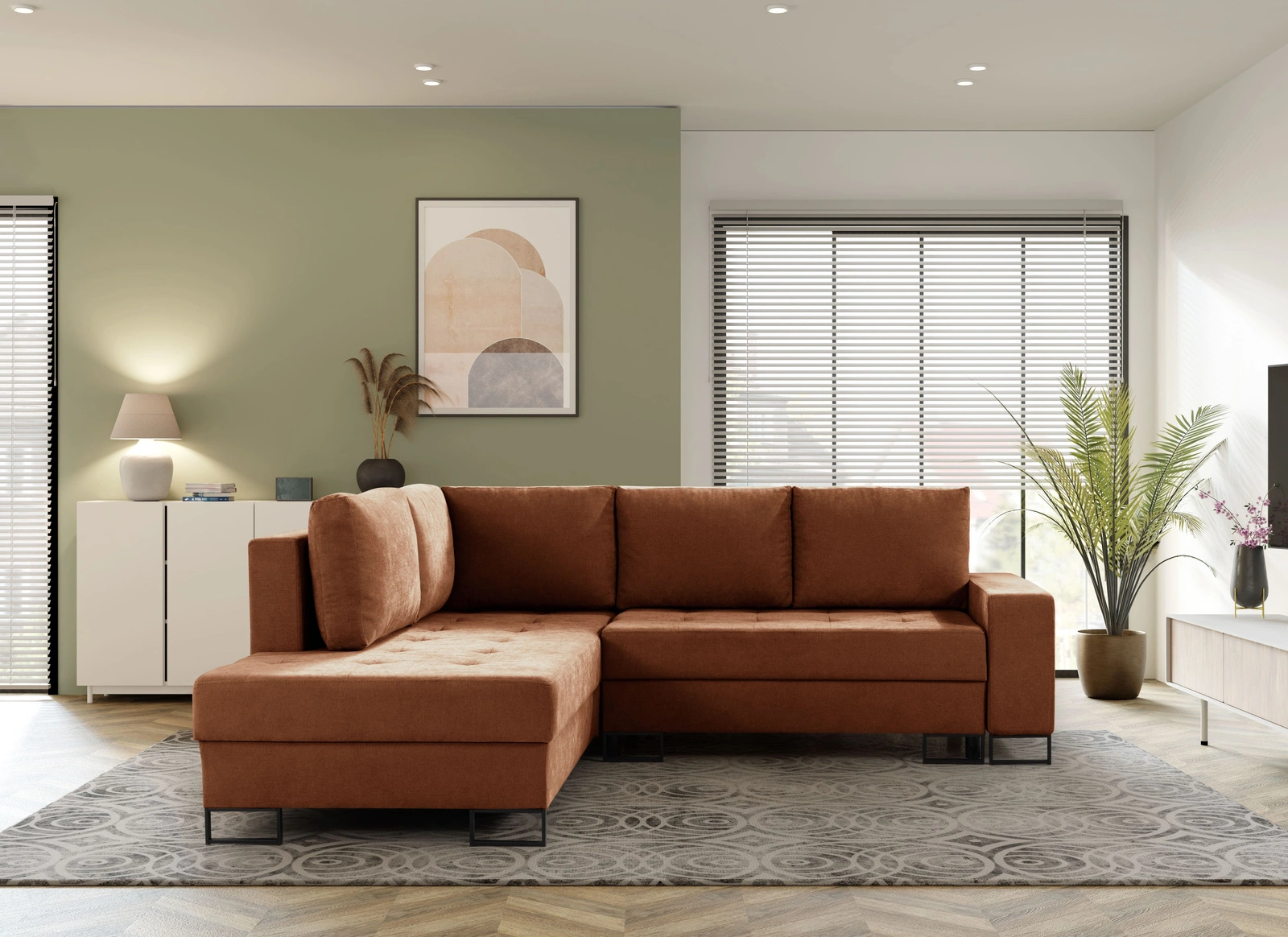 Narożnik TREVI – Ciepło domowego ogniska w kolorze rdzy