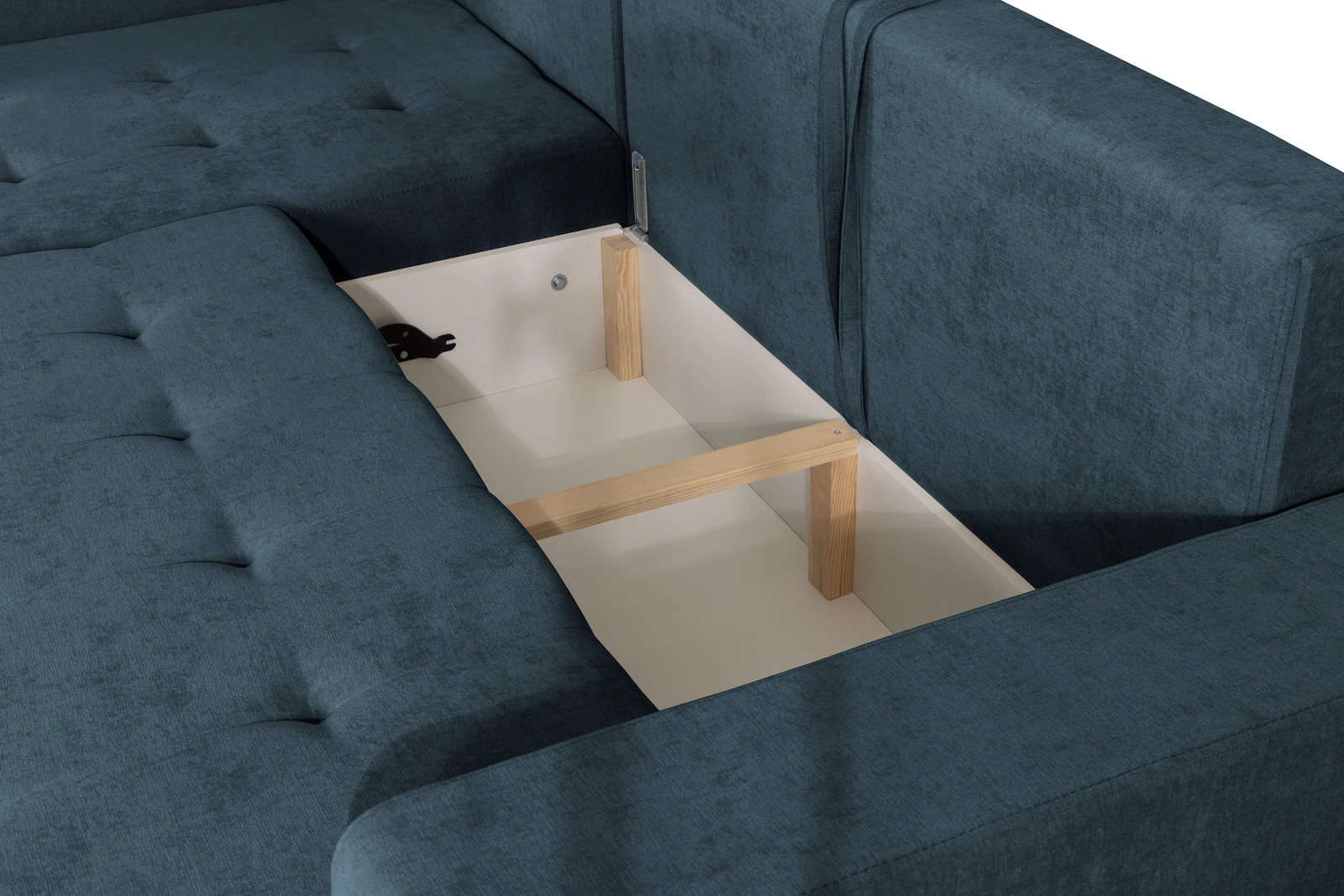 - Pojemnik na pościel: Ukryty schowek pod siedziskiem to idealne miejsce na przechowywanie pościeli dla gości.