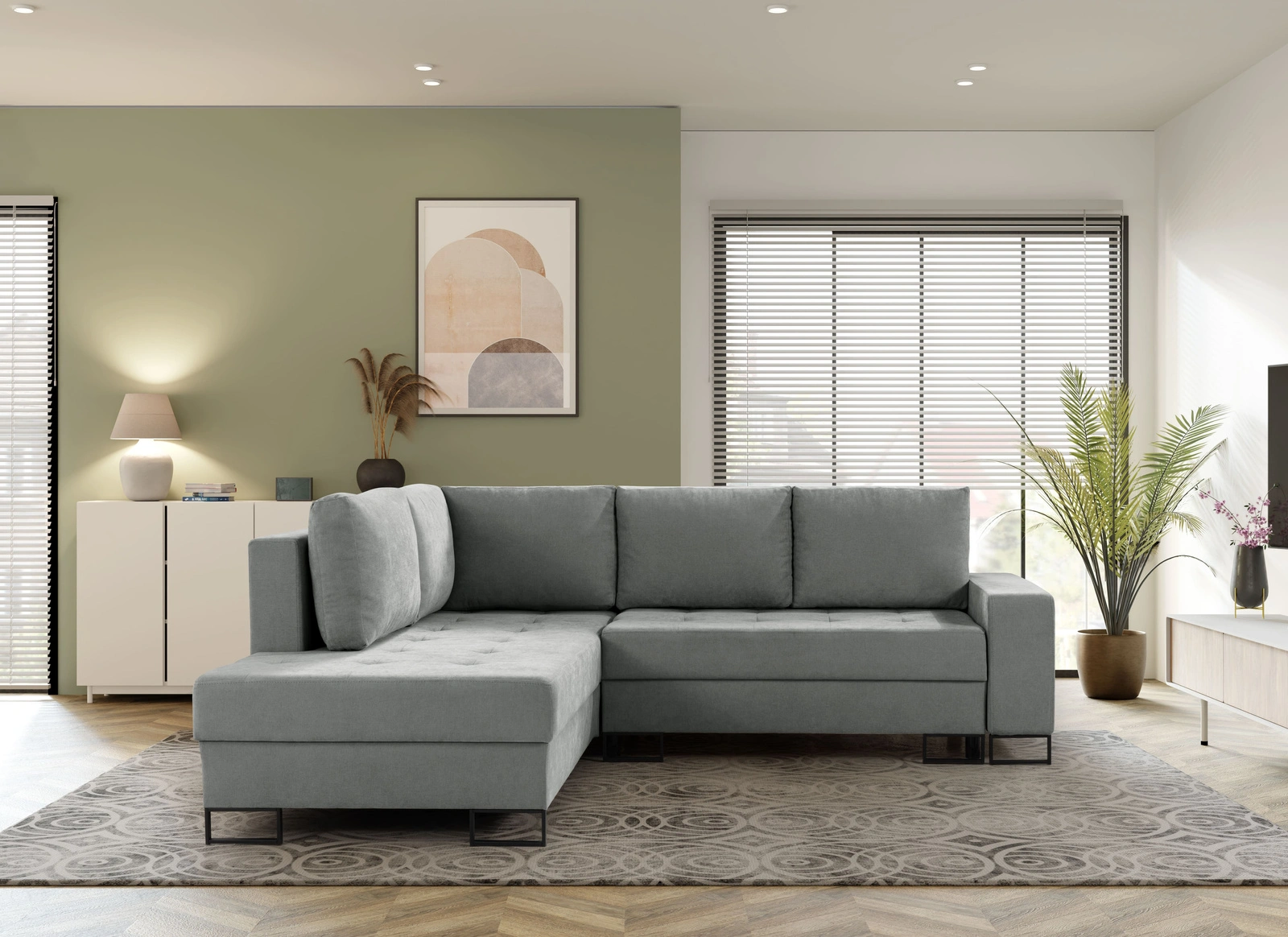 Narożnik TREVI lewostronny Wind 90 szary szenil funkcja spania