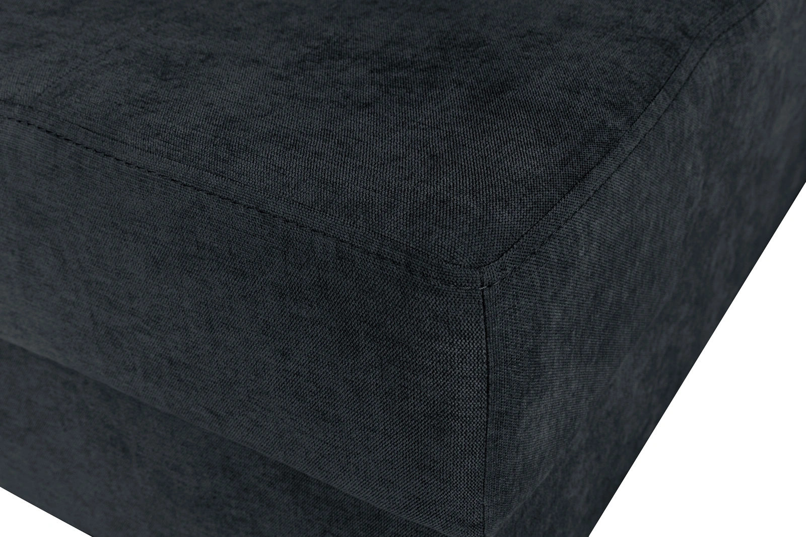 - Struktura: Szenil o gramaturze 230 g/m² posiada splot imitujący naturalny len. To rzadkie połączenie surowego wyglądu lnu z miękkością szenilu sprawia, że czarny narożnik jest przyjemny w dotyku i przytulny.