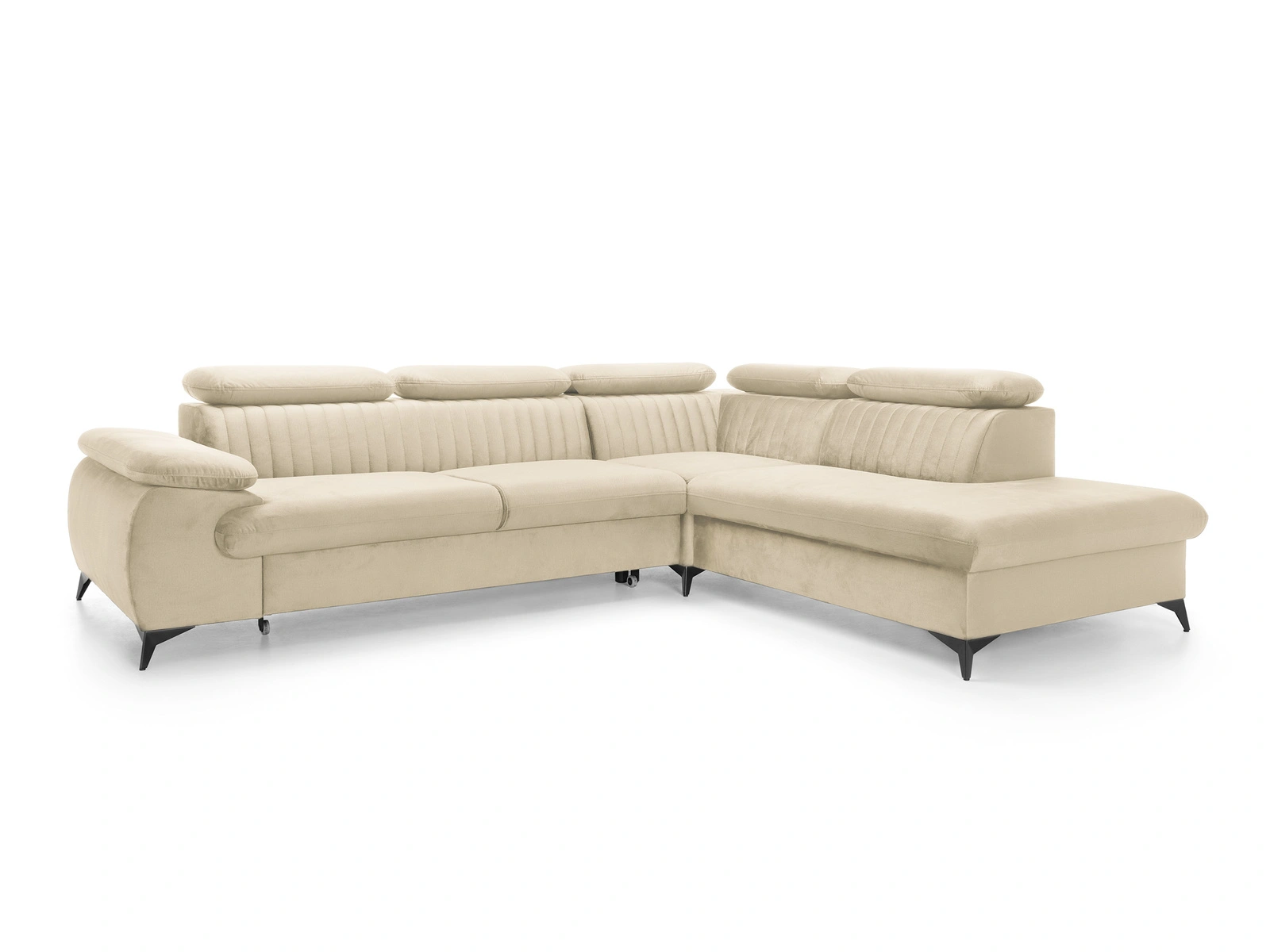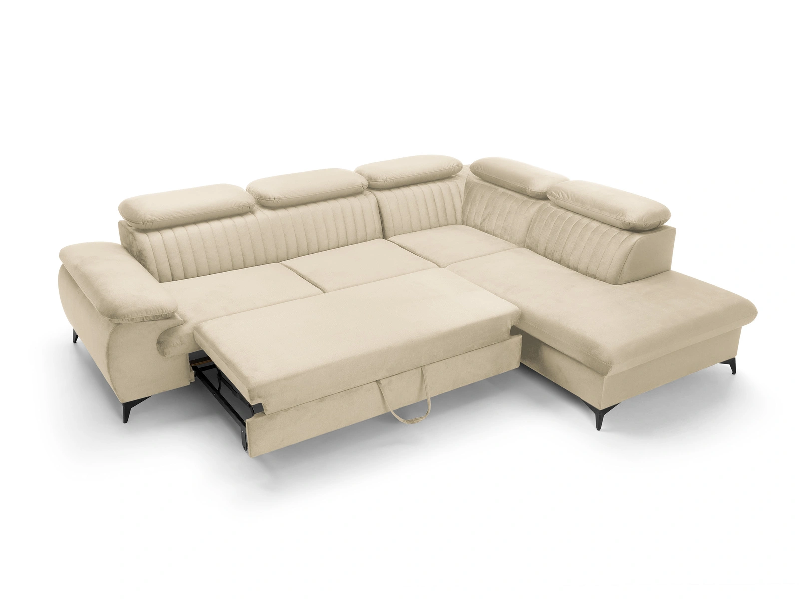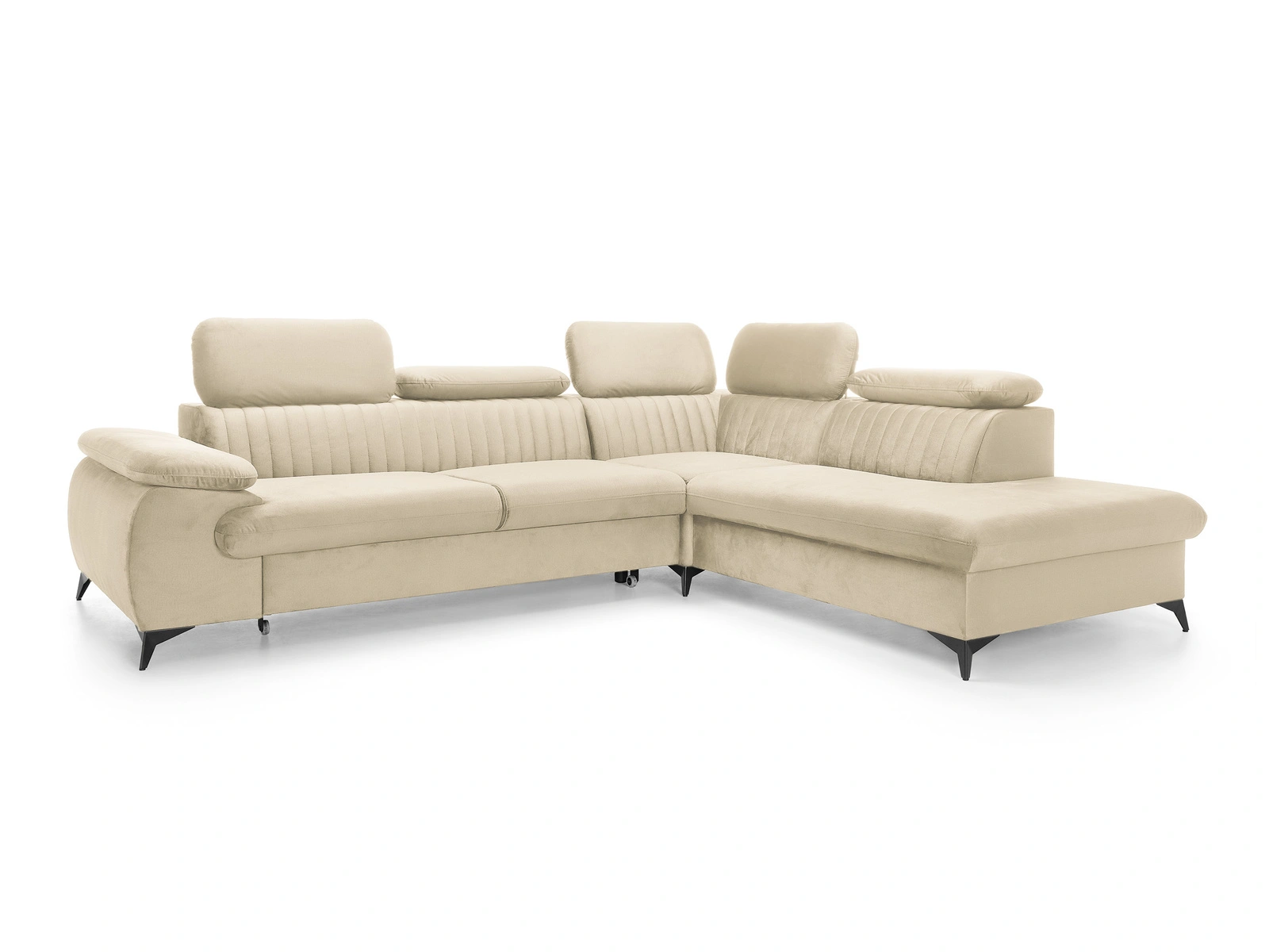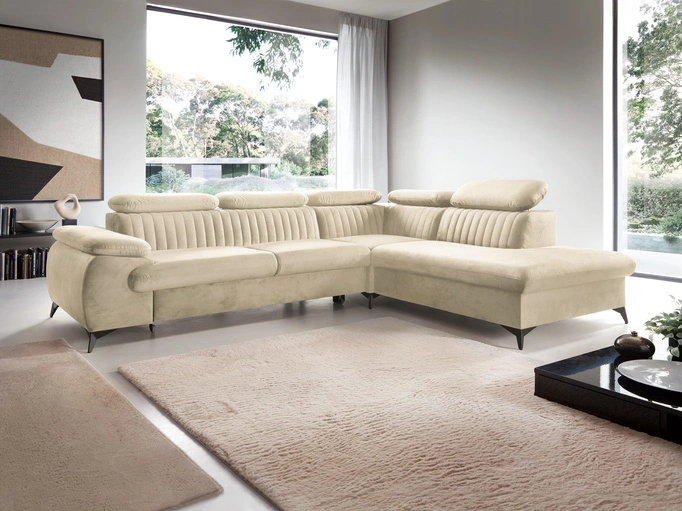 Narożnik VETTO prawostronny Monolith 02 ecru kremowy welur funkcja spania