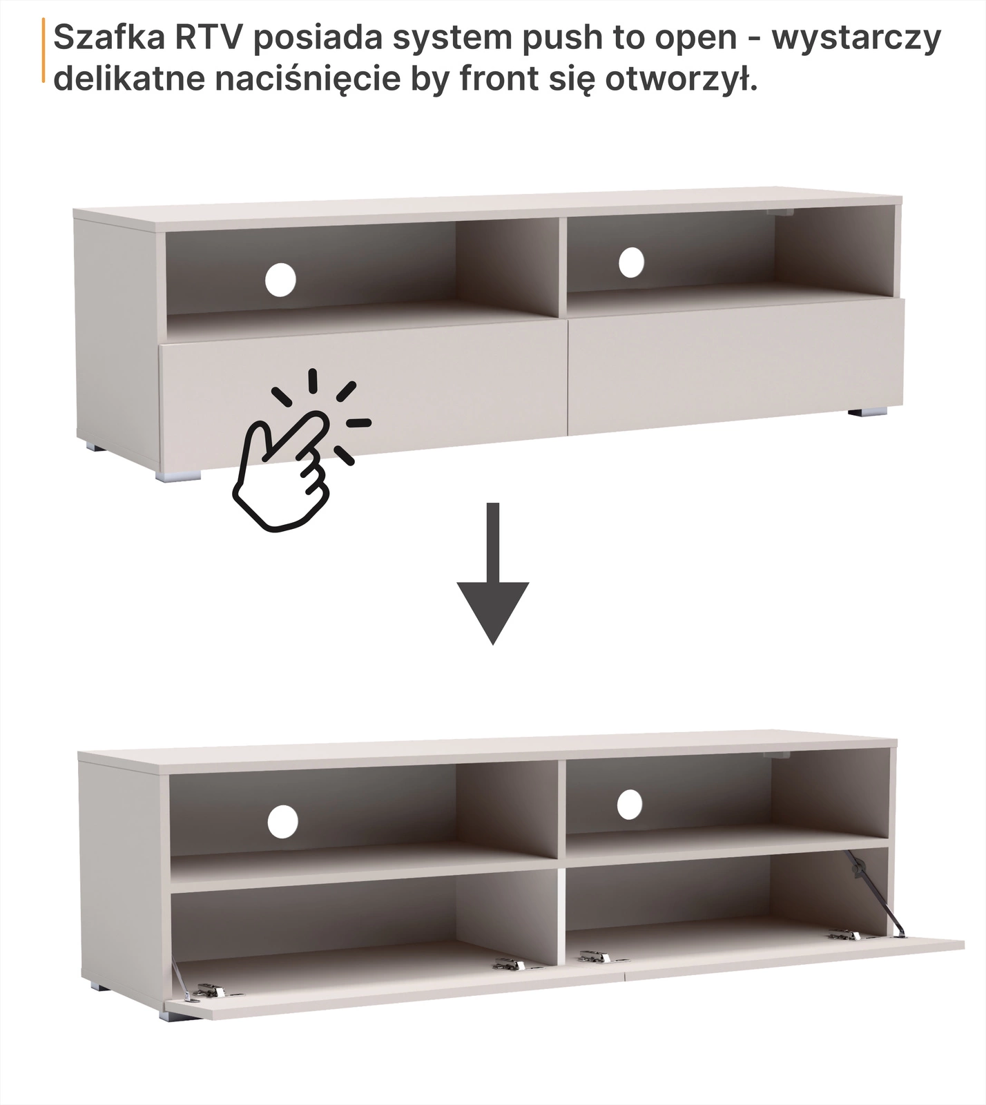 Nowoczesny zestaw RTV Tebris Dual 200 – cashmere, 2 szafki 100 cm z push to open