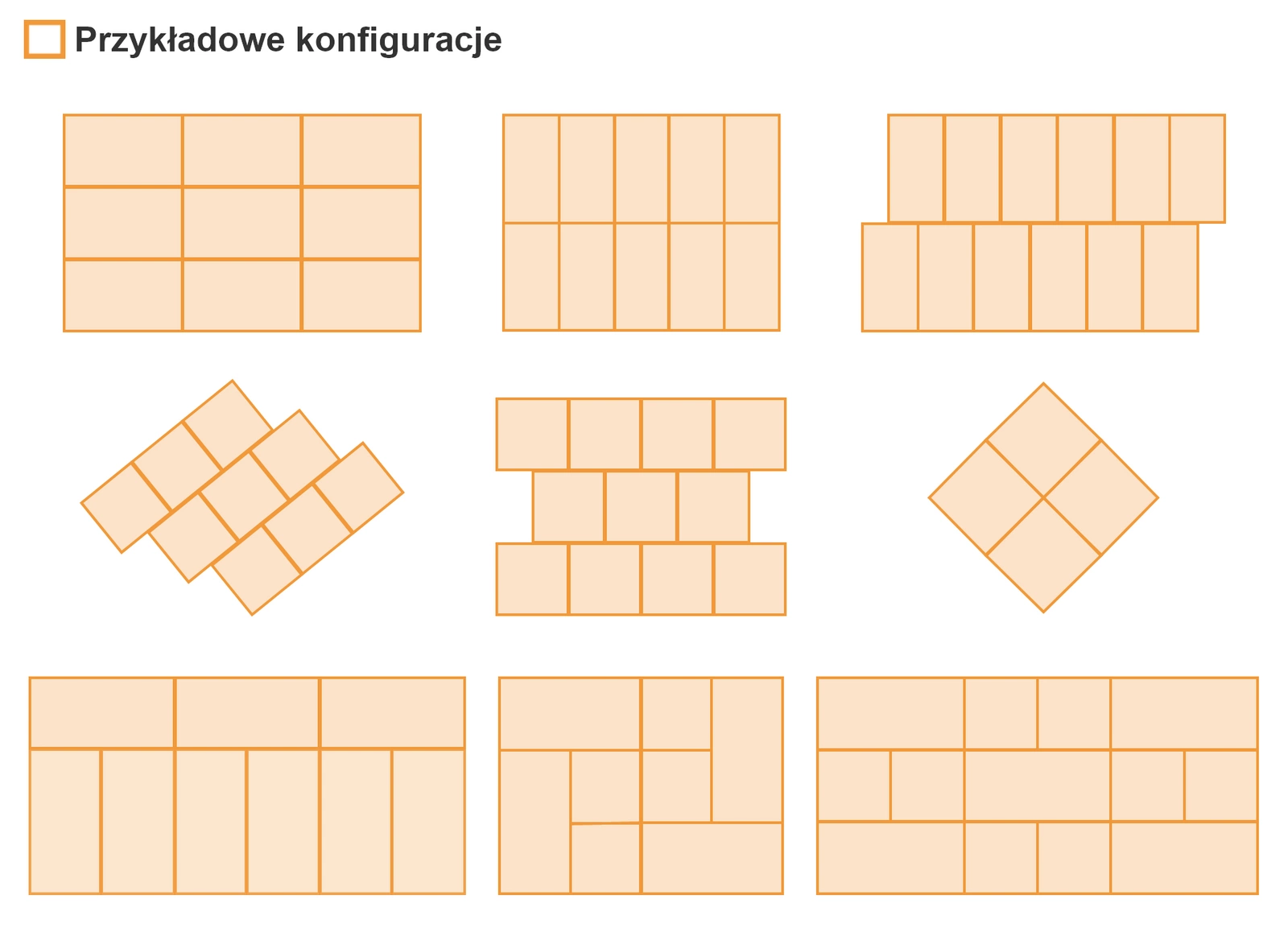 Szeroka gama kolorów i rozmiarów pozwala na pełną personalizację wnętrza. Montaż jest szybki i łatwy – wystarczy użyć kleju montażowego lub rzepów.