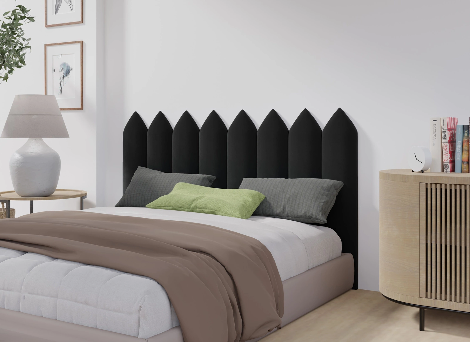 Panele tapicerowane w kształcie szpiczastego płotka można łatwo dopasować do różnych aranżacji dzięki szerokiej gamie kolorystycznej, tworząc przytulną i ciepłą atmosferę w pokoju dziecięcym. Ich unikalny wzór, przypominający płotek, wprowadza przyjazny, bajkowy klimat, który pobudza wyobraźnię dziecka. Dodatkowo, panele te tłumią hałas, co sprzyja spokojnemu odpoczynkowi i wyciszeniu przestrzeni.