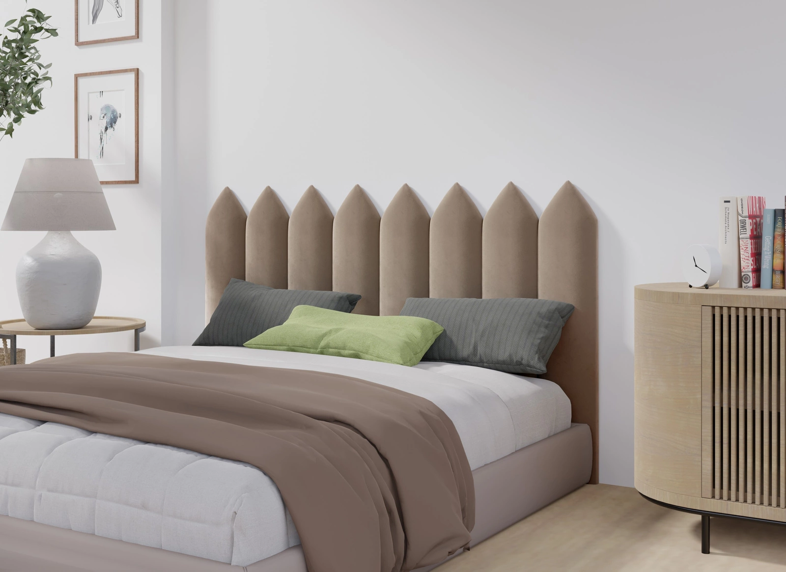 Panele tapicerowane w kształcie szpiczastego płotka można łatwo dopasować do różnych aranżacji dzięki szerokiej gamie kolorystycznej, tworząc przytulną i ciepłą atmosferę w pokoju dziecięcym. Ich unikalny wzór, przypominający płotek, wprowadza przyjazny, bajkowy klimat, który pobudza wyobraźnię dziecka. Dodatkowo, panele te tłumią hałas, co sprzyja spokojnemu odpoczynkowi i wyciszeniu przestrzeni.