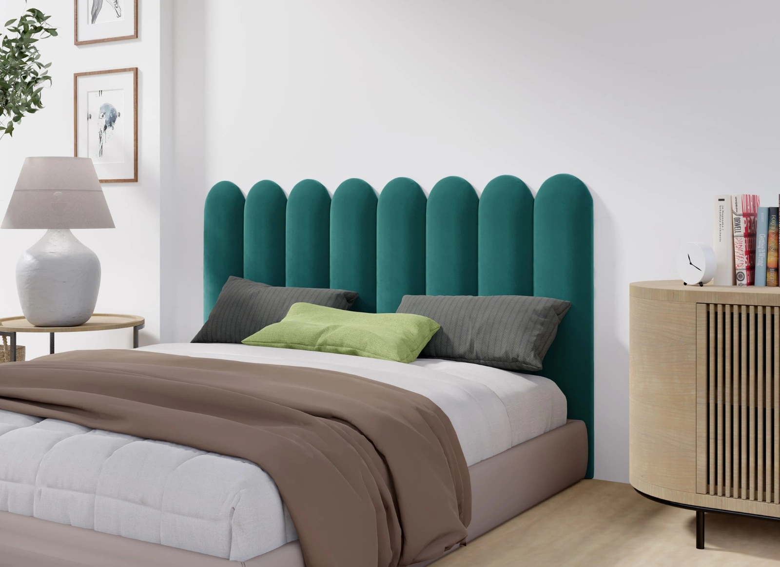 - Panele tapicerowane w kształcie "płotka zaokrąglonego" to doskonały wybór do pokoju dziecięcego. Zapewniają bezpieczeństwo, chroniąc maluchy przed przypadkowymi uderzeniami, jednocześnie dodając pomieszczeniu estetycznego, przytulnego charakteru.