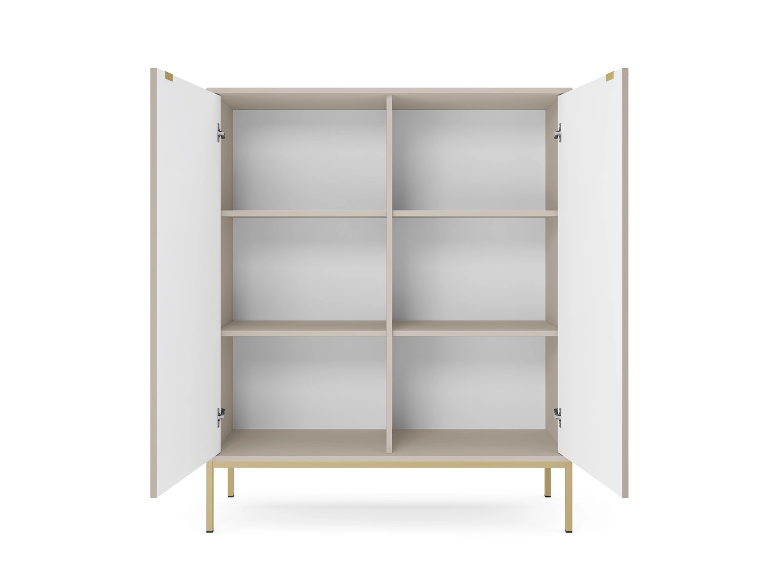 Pojemna komoda Kioto K104 w kolorze cashmere i złotymi nóżkami