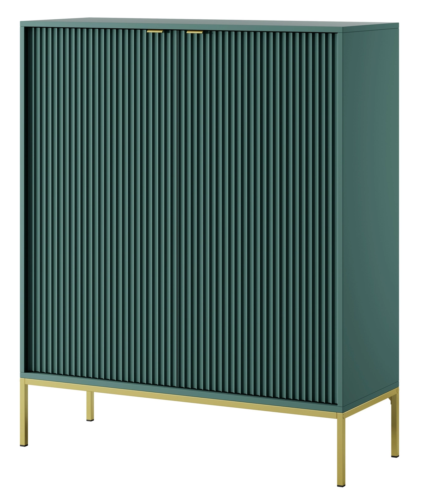 Pojemna komoda Kioto K104 w kolorze zielonym i złotymi nóżkami