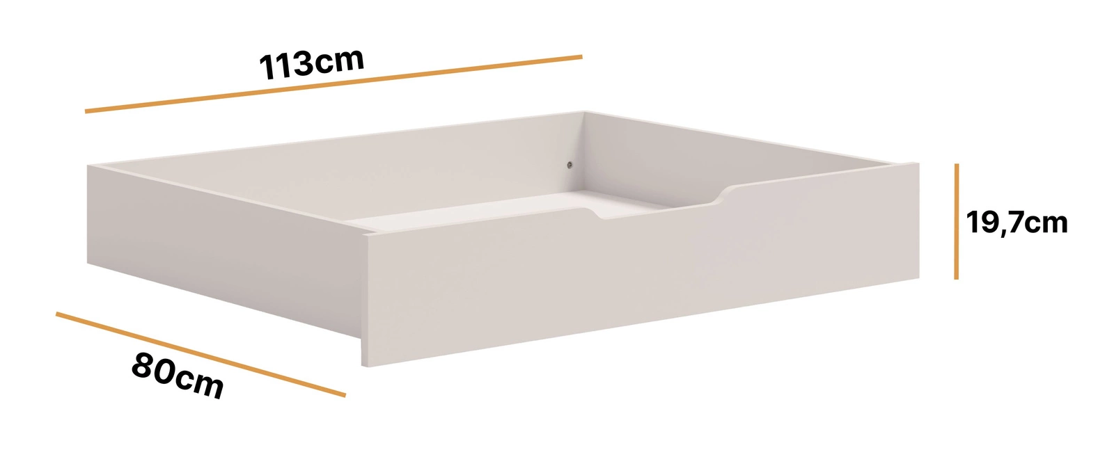 Pojemnik na pościel MODENA to doskonałe uzupełnienie łóżka z kolekcji MODENA. Wykonany w kolorze cashmere, idealnie komponuje się z ramą łóżka, tworząc spójny, estetyczny zestaw. To rozwiązanie, które pomoże Ci sprytnie zagospodarować przestrzeń pod łóżkiem, zapewniając dodatkowe miejsce na przechowywanie pościeli, koców, ubrań sezonowych lub innych domowych tekstyliów.