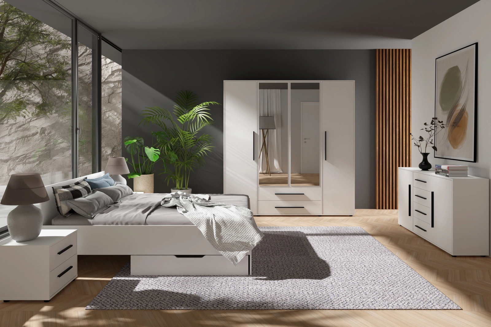 Pojemnik na pościel MODENA to doskonałe uzupełnienie łóżka z kolekcji MODENA. Wykonany w kolorze białym, idealnie komponuje się z ramą łóżka, tworząc spójny, estetyczny zestaw. To rozwiązanie, które pomoże Ci sprytnie zagospodarować przestrzeń pod łóżkiem, zapewniając dodatkowe miejsce na przechowywanie pościeli, koców, ubrań sezonowych lub innych domowych tekstyliów.