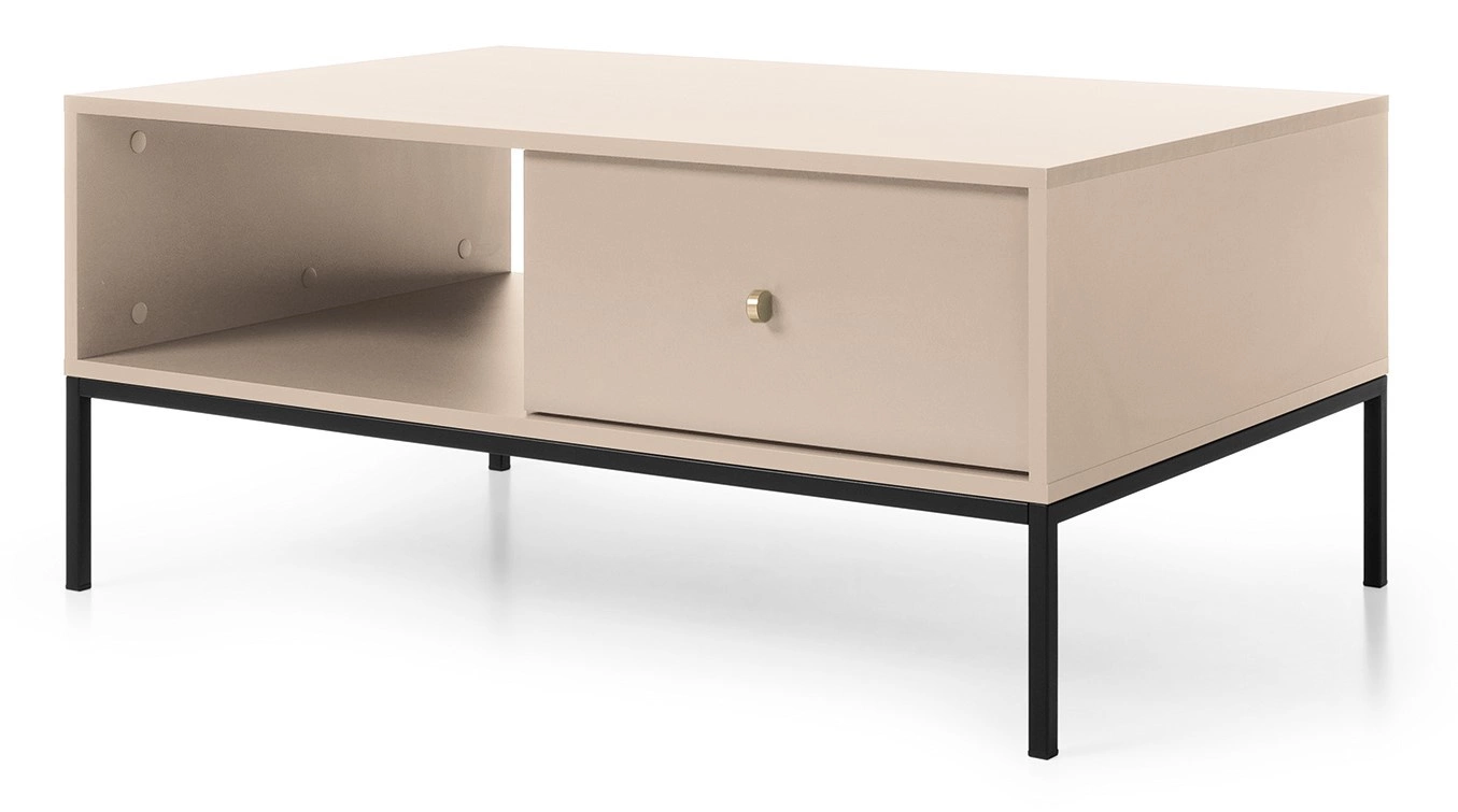 - Prostokątna ława Bari w ciepłym beżowym kolorze to nie tylko elegancki dodatek do Twojego wnętrza, ale także praktyczne rozwiązanie do przechowywania. Z dwiema pojemnymi szufladami, ta ława pozwala utrzymać porządek w Twoim salonie.