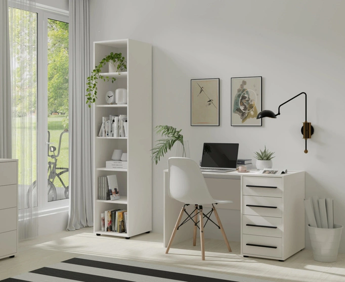 Regał Modena w kolorze biały mat to idealne rozwiązanie dla osób ceniących prostotę i praktyczność. Jego uniwersalna forma i neutralne wykończenie świetnie wpisują się w każde wnętrze, niezależnie od stylu – od skandynawskiego po nowoczesny i klasyczny.