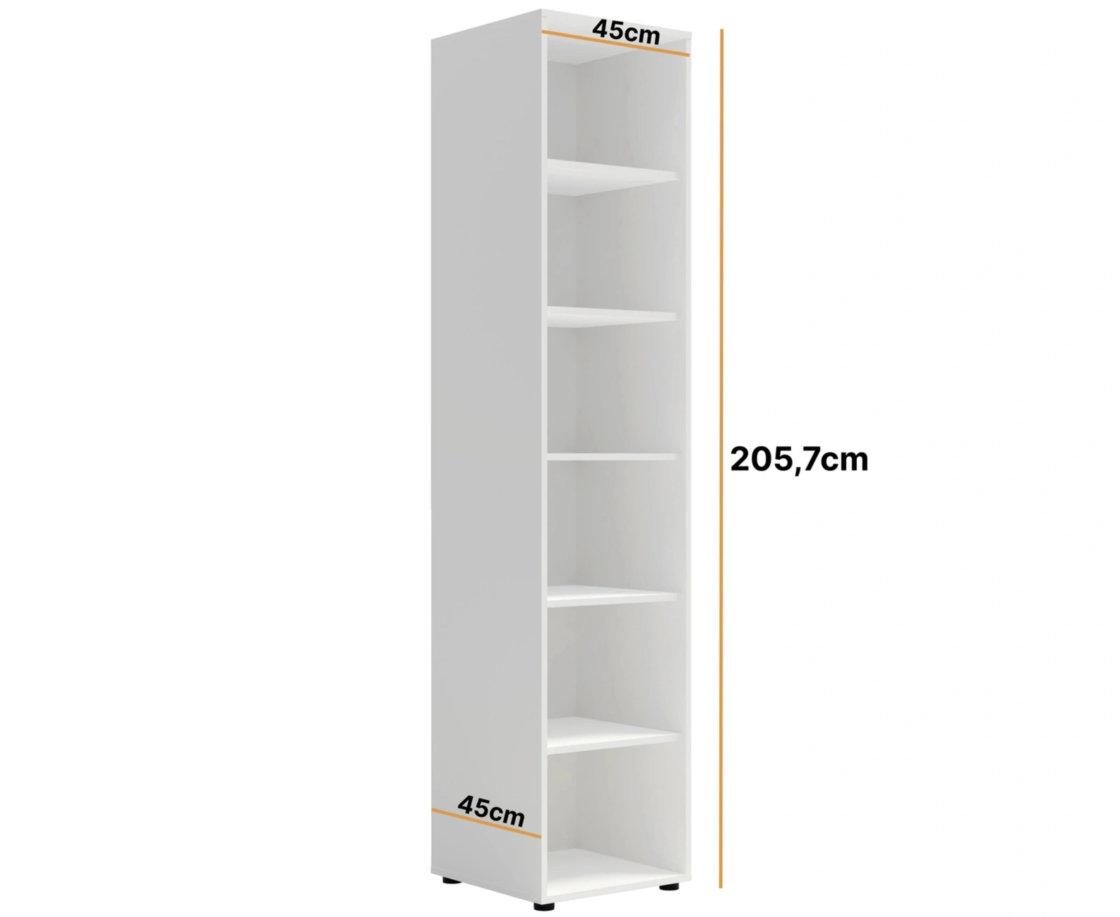 Wyposażony w sześć przestronnych półek regał zapewnia doskonałą organizację książek, dekoracji, segregatorów czy akcesoriów codziennego użytku. Dzięki swojej kompaktowej szerokości zmieści się nawet w wąskich przestrzeniach, jednocześnie oferując sporą powierzchnię do przechowywania. Solidna konstrukcja gwarantuje stabilność i trwałość, a matowe wykończenie nadaje elegancji i ułatwia utrzymanie mebla w czystości.