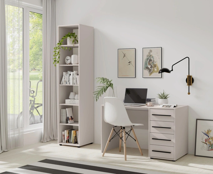 Regał Modena w kolorze cashmere to idealne rozwiązanie dla osób ceniących prostotę i praktyczność. Jego uniwersalna forma i neutralne wykończenie świetnie wpisują się w każde wnętrze, niezależnie od stylu – od skandynawskiego po nowoczesny i klasyczny.