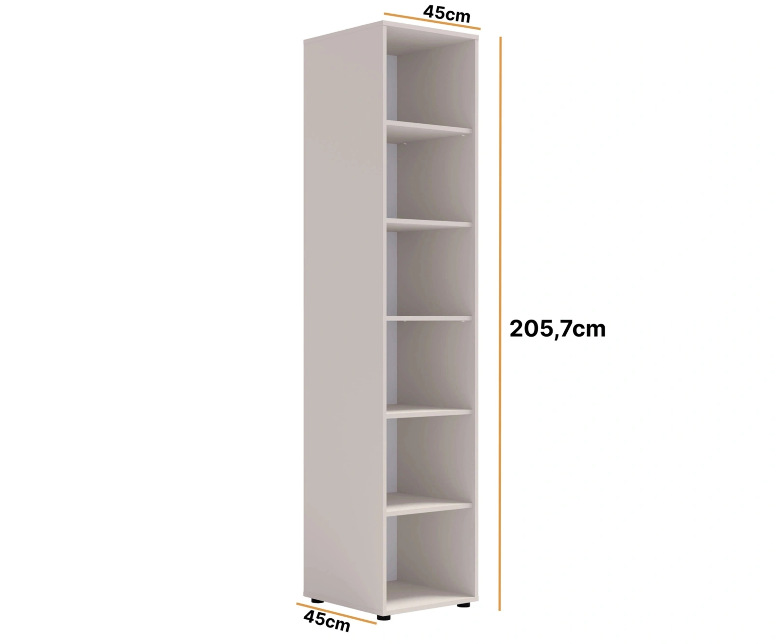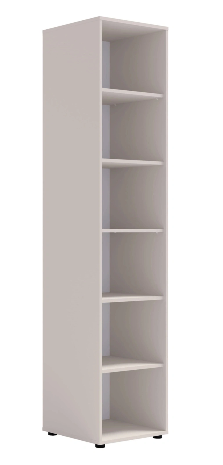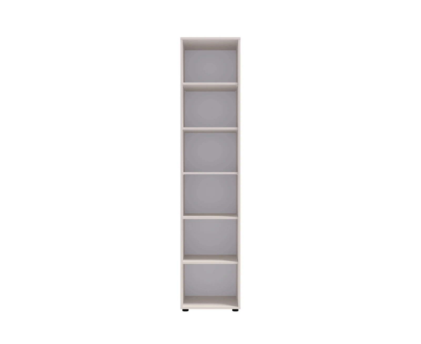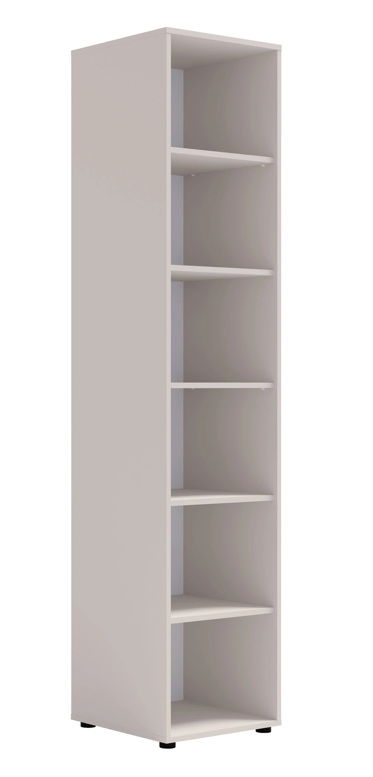 • Regał Modena w kolorze cashmere z 6 półkami. Minimalistyczny, praktyczny i elegancki – idealny do salonu, biura i pokoju młodzieżowego.