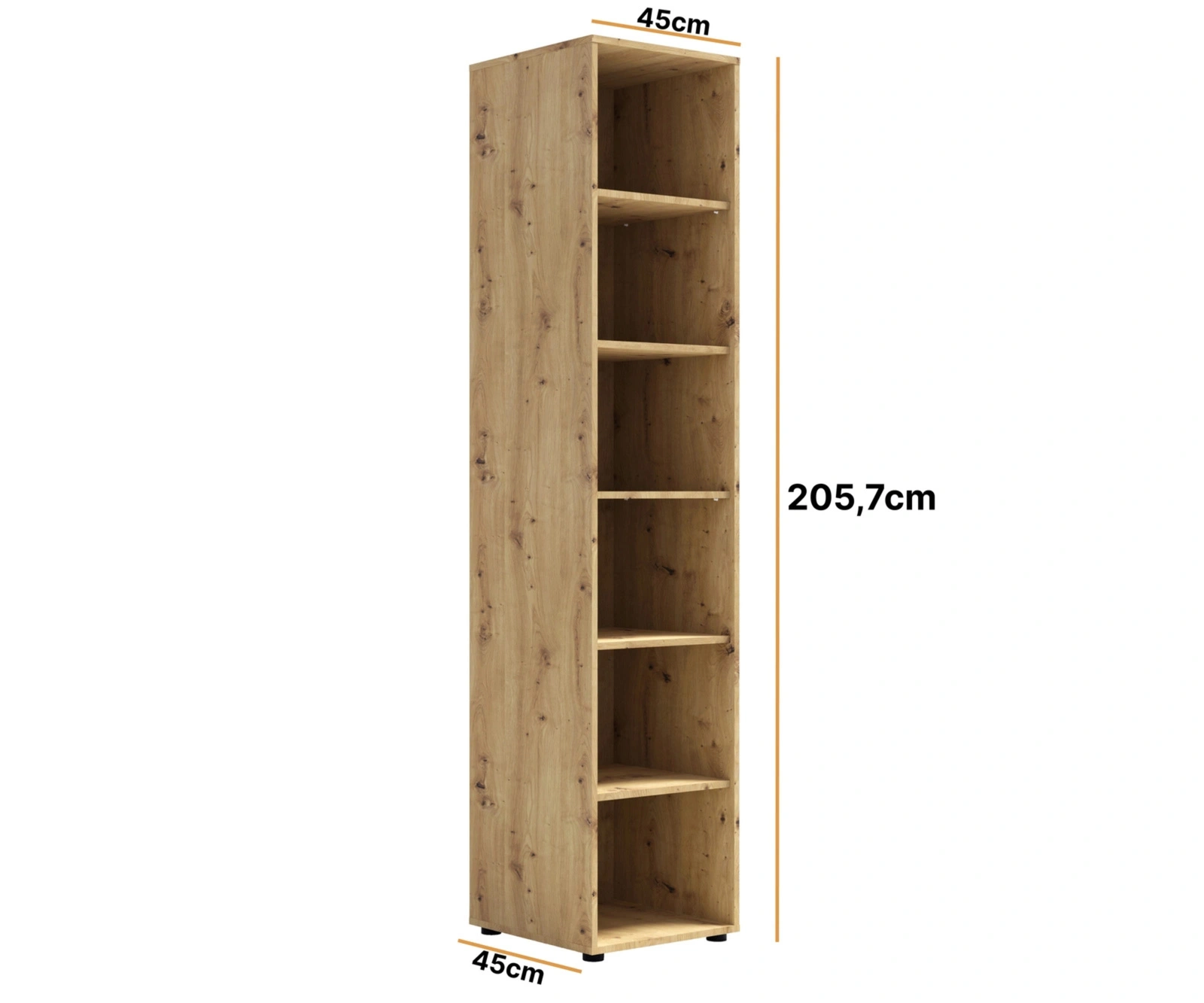 Wyposażony w sześć przestronnych półek, regał zapewnia doskonałą organizację książek, dekoracji, segregatorów czy akcesoriów codziennego użytku. Dzięki swojej kompaktowej szerokości zmieści się nawet w wąskich przestrzeniach, jednocześnie oferując sporą powierzchnię do przechowywania. Solidna konstrukcja gwarantuje stabilność i trwałość, a matowe wykończenie nadaje elegancji i ułatwia utrzymanie mebla w czystości.