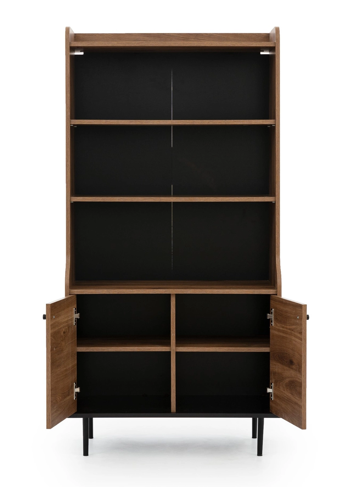 Regał stojący Nero R2D idealnie sprawdzi się do przechowywania dokumentów, książek, ozdób lub domowych akcesoriów. Pojemna przestrzeń za drzwiami może posłużyć np. do przechowywania zastawy stołowej. Regał w loftowym stylu to niezwykle modny wybór, który sprawdzi się we wnętrzach zarówno nowoczesnych jak i klasycznych.