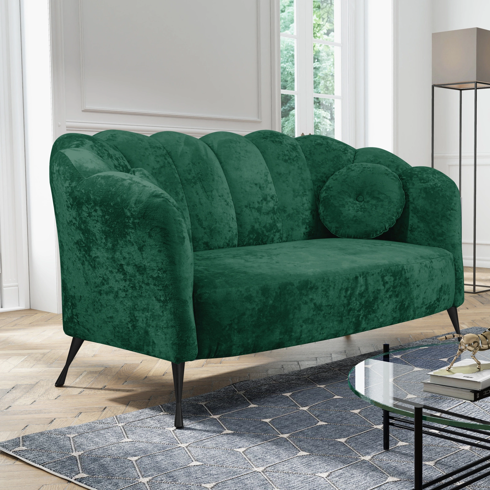 Dwuosobowa sofa Adria na metalowych nóżkach w kolorze czarnym to świetna propozycja do salonu, gabinetu kosmetycznego lub biura. Nowoczesne, zintegrowane z bokami oparcie na wzór muszelki jest niezwykle wygodne. Tkanina w odcieniu butelkowej zieleni pozostanie modna przez długie lata, a dzięki właściwościom hydrofobowym sam materiał jest bardzo łatwy w utrzymaniu czystości. Kto nie marzy o wygodnym i pięknym miejscu do relaksu? Z 2-osobową sofą Adria to możliwe!