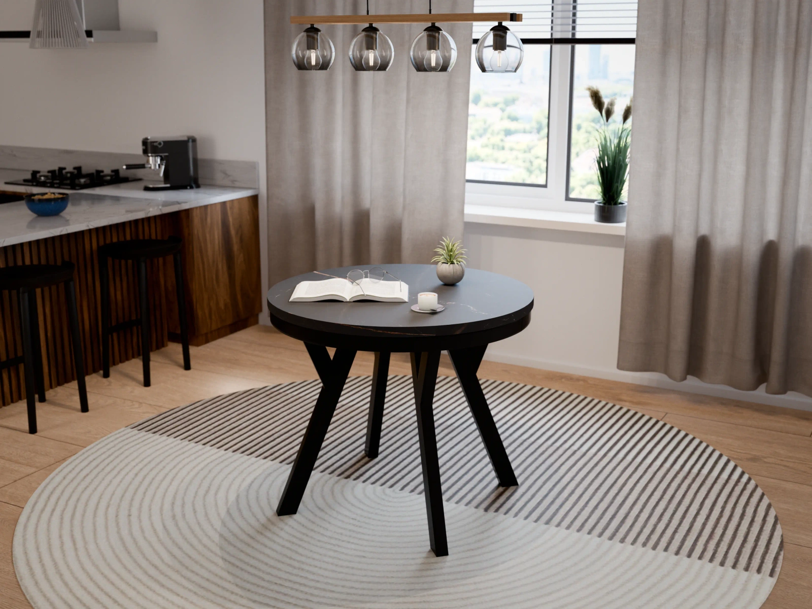 - Wersja podstawowa (Ø 90 cm) – zajmuje niewiele miejsca, idealny do codziennych posiłków w gronie najbliższych.