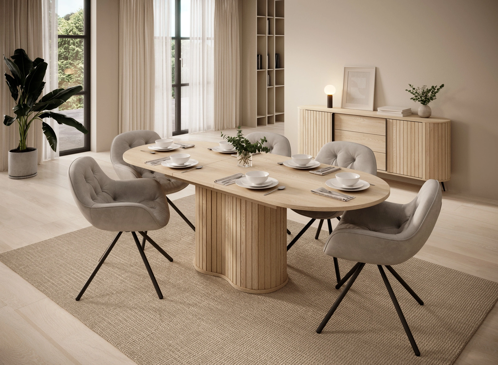 Stół LOVI D – Owalna Elegancja i Ryflowana Forma