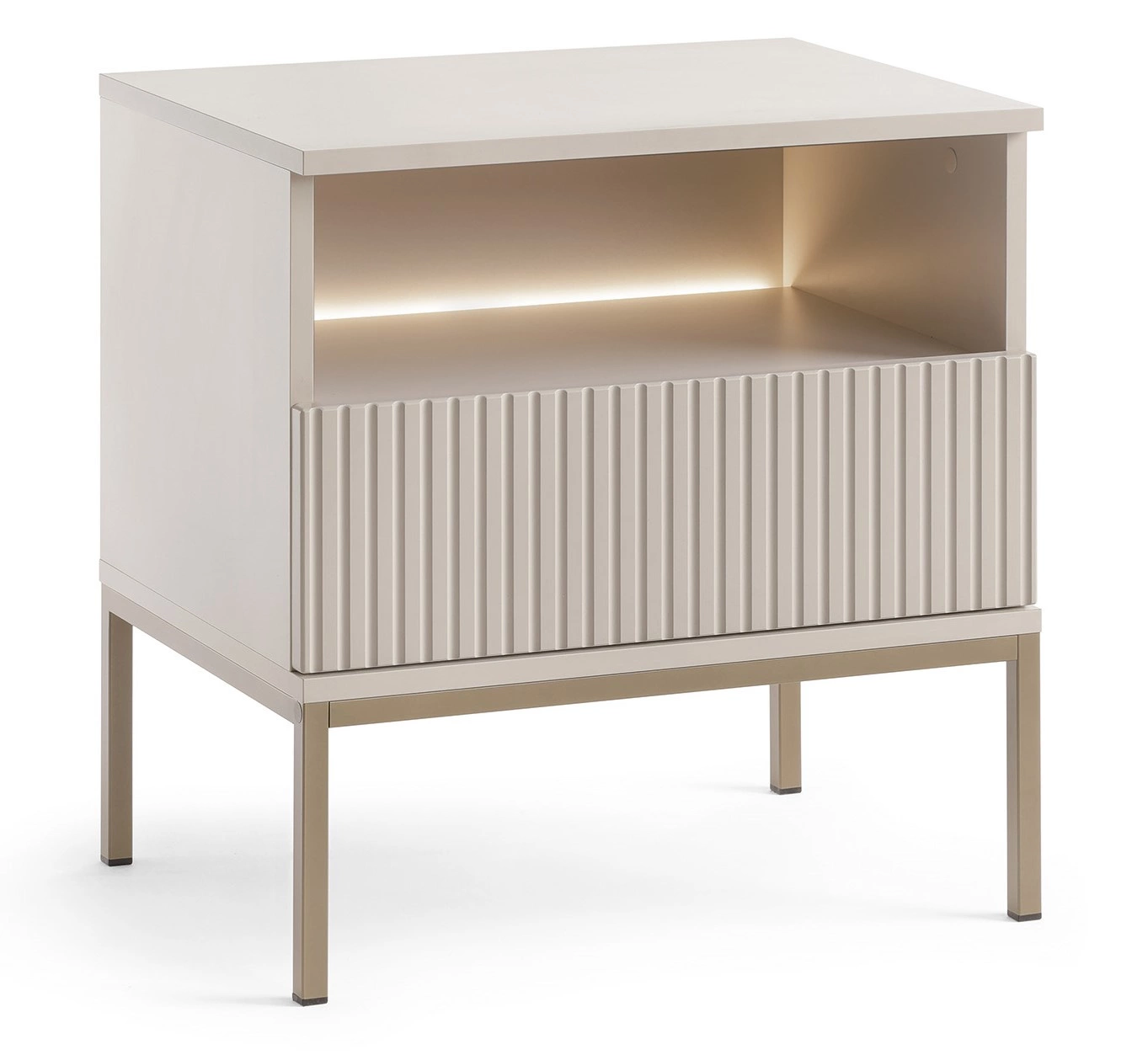 Stolik nocny Lagos z metalowymi nóżkami w kolorze Cashmere + LED