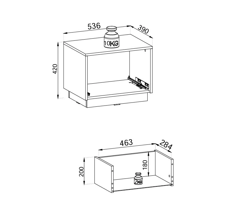 - Korpus: płyta laminowana 16 mm, obrzeże ABS 0,5 mm
