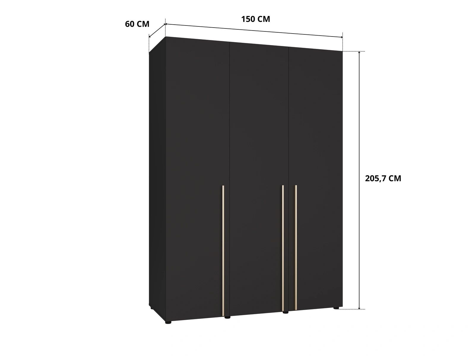Szafa 3-Drzwiowa ARNI 150 cm Czarna – Matowa Uchylna Do Sypialni