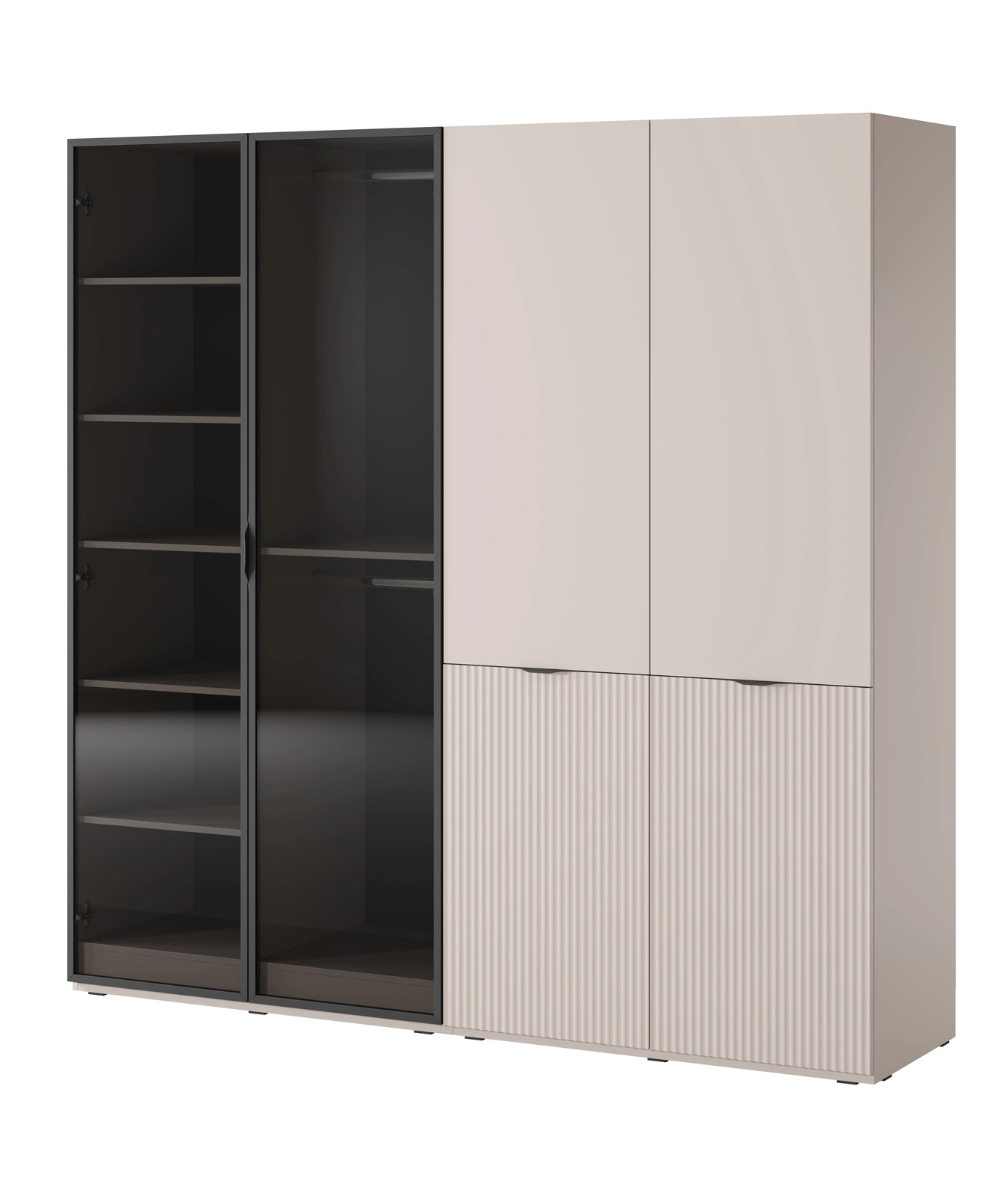 Szafa czterodrzwiowa Zen w kolorze Cashmere + przyciemniane szkło