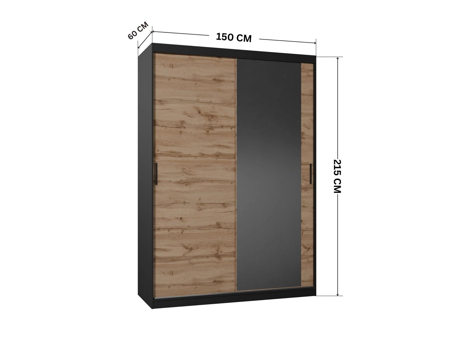 Szafa przesuwna MIRANO 150 cm dąb wotan – wysoka 215 cm, styl Loft
