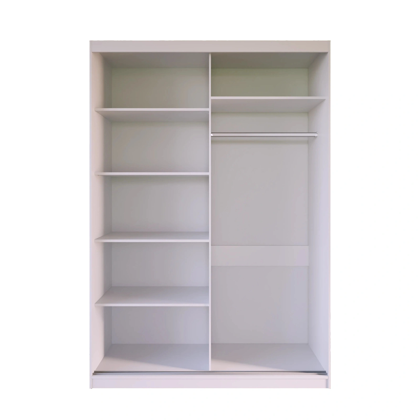 - Wysoka szafa przesuwna MIRANO (150x215 cm) w kolorze kaszmiru to idealny wybór do nowoczesnej sypialni. Oferuje drążek na wieszaki i głębokie półki (60 cm). Ciepły beżowy odcień i system drzwi przesuwnych łączą styl z funkcjonalnością.