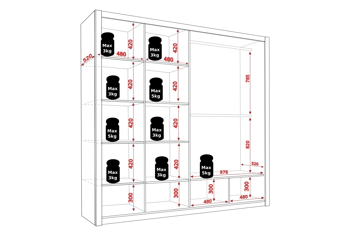 • 2x drążki ubraniowe,