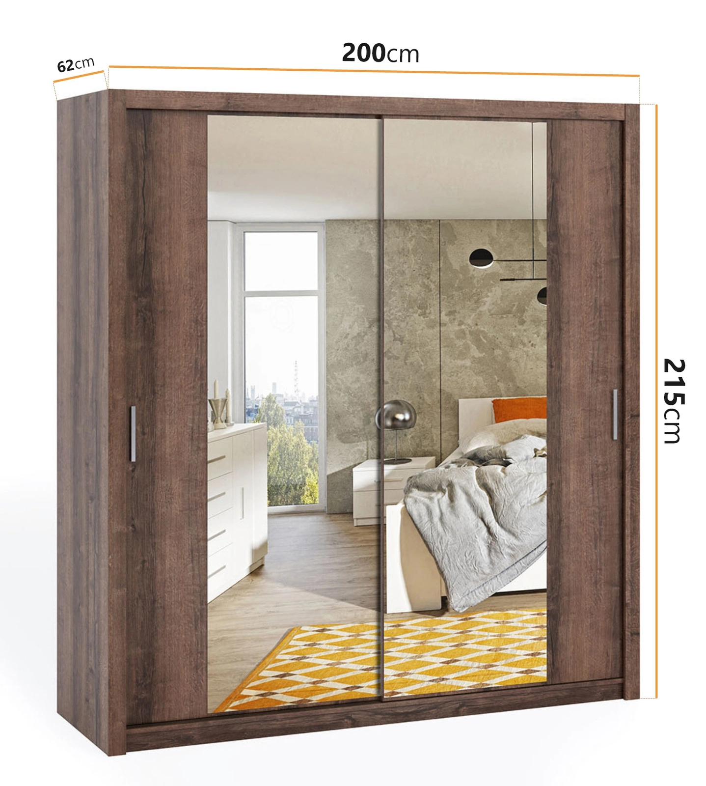 Szafa przesuwna Tamiza 200 cm z lustrem dąb monastery