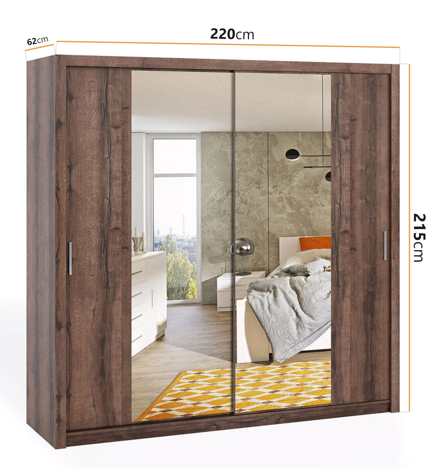 Szafa przesuwna Tamiza 220 cm z lustrem dąb monastery