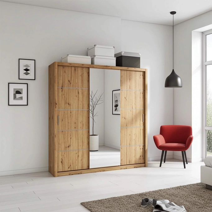 Opinie o Szafa przesuwna Tamiza 250 cm z lustrem dąb artisan