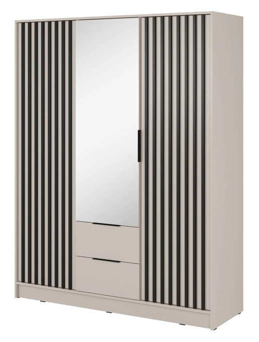 Szafa Stilo w kolorze cashmere trzydrzwiowa z lustrem i lamelami na froncie