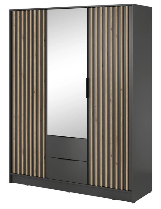 Szafa Stilo w kolorze grafitowym trzydrzwiowa z lustrem i lamelami na froncie