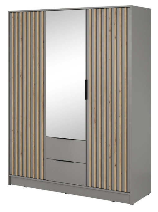 Szafa Stilo w kolorze szarym trzydrzwiowa z lustrem i lamelami na froncie