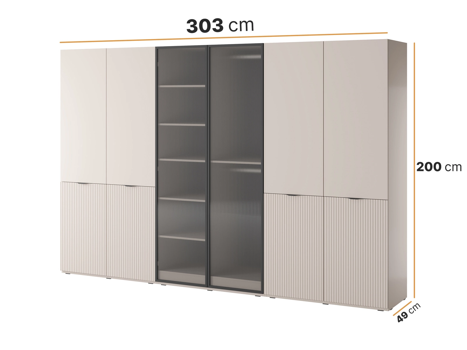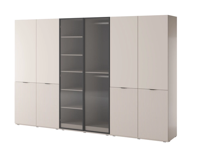 Szafa sześciodrzwiowa Zen w kolorze Cashmere + ryflowane szkło