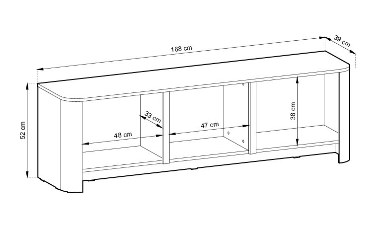 Szafka RTV Aura w dekorze dąb naturalny to ukłon w stronę prostoty i ponadczasowego designu. Brak dekoracyjnych wstawek podkreśla minimalistyczny charakter mebla, który doskonale odnajdzie się w ciepłych, domowych aranżacjach.
