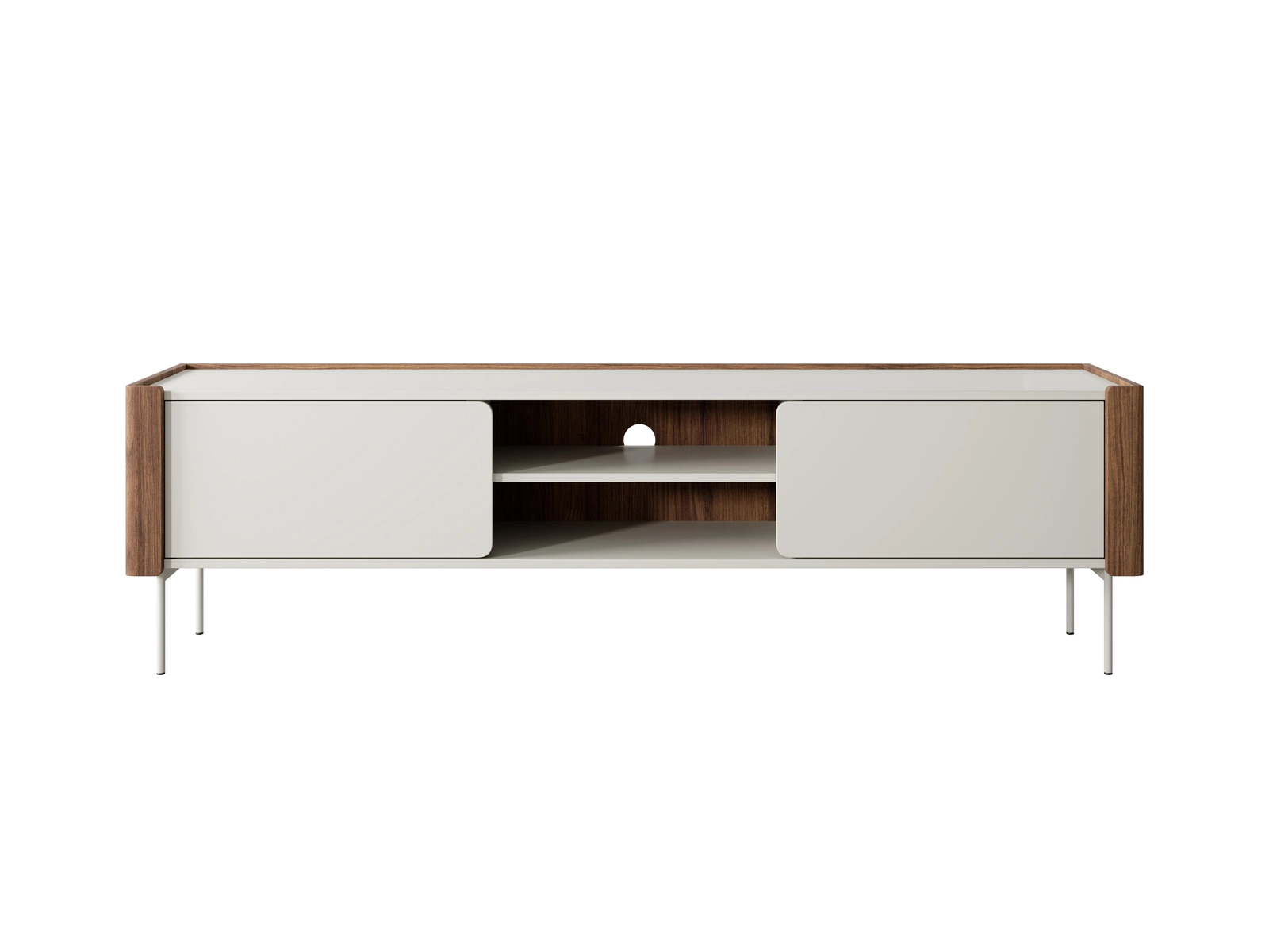 Szafka RTV Kalon 180cm w kolorze cashmere/orzech warmia z metalowymi nóżkami