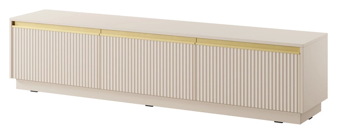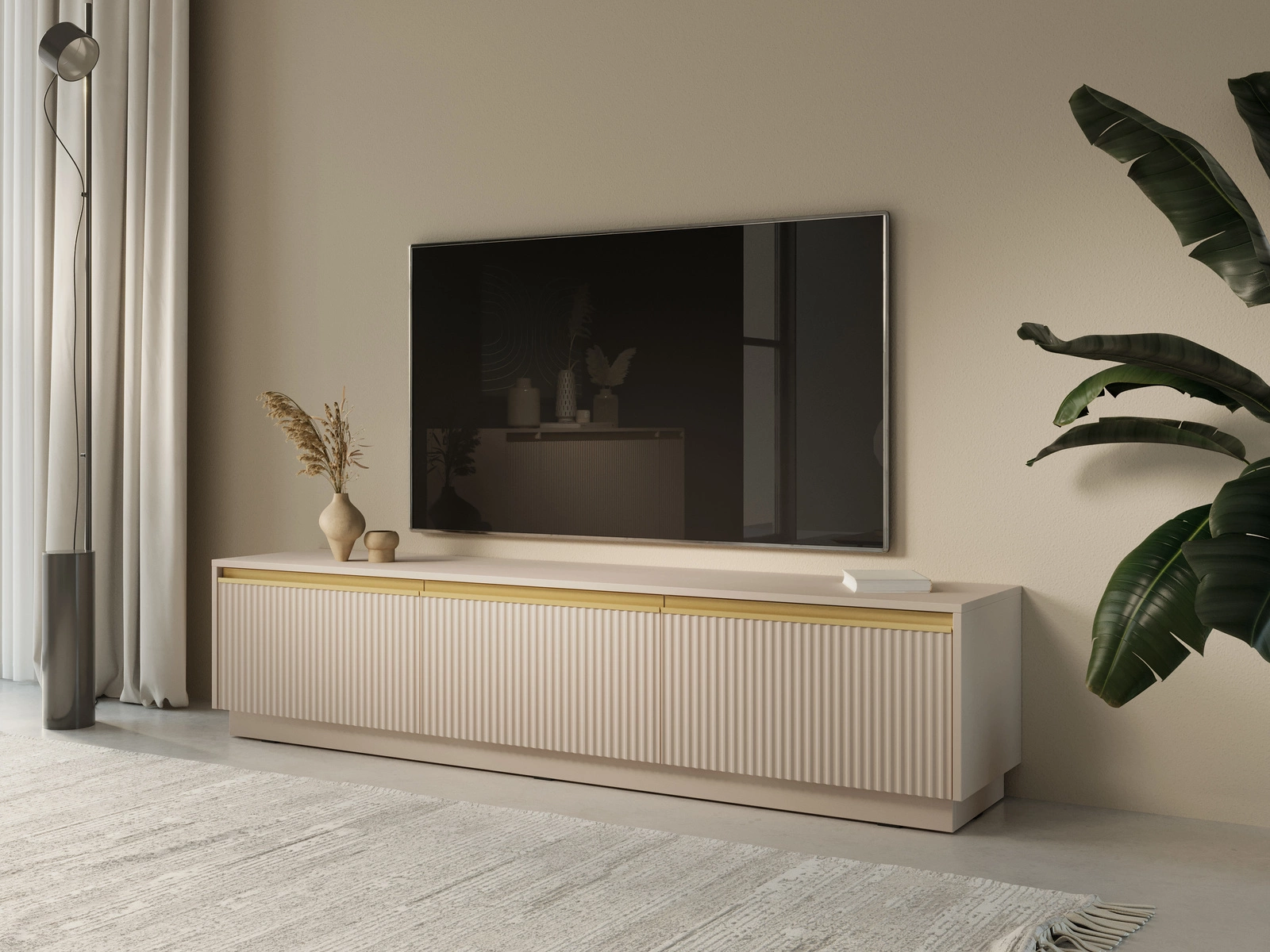 Szafka RTV Loren 180cm w kolorze cashmere trzydrzwiowa z ryflowanymi frontami