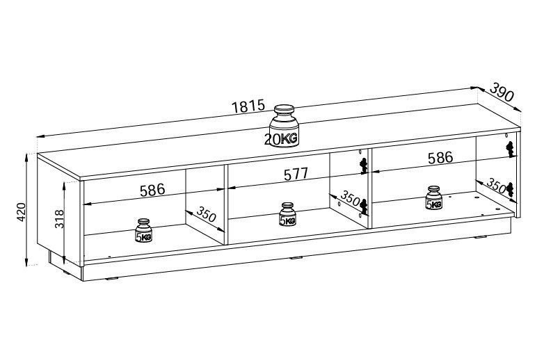 Szafka RTV Loren to połączenie nowoczesnej estetyki i funkcjonalnego designu. Kolor cashmere, pionowo frezowane fronty prezentują się niezwykle stylowo, a subtelne złote akcenty dodają całości elegancji. Mebel oferuje trzy pojemne schowki z wygodnym systemem otwierania na zawiasach. Na szafce bez problemu pomieszczą się sprzęt RTV, dekodery czy inne akcesoria.