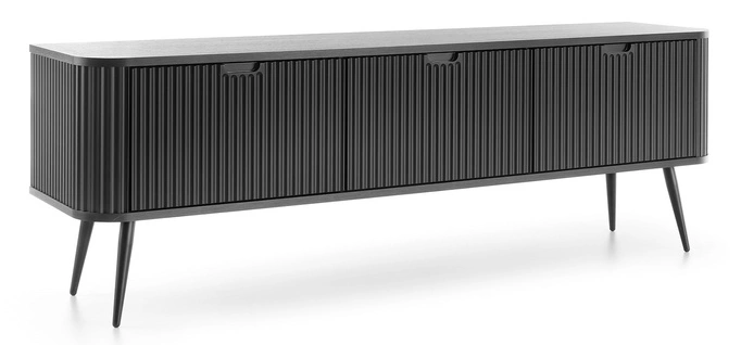 Szafka RTV Porto 168cm w kolorze czarnym trzydrzwiowa z ryflowanymi frontami i czarnymi nogami