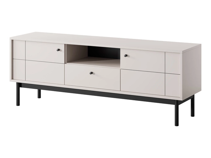 Szafka RTV Sora 154cm w kolorze cashmere z czarnymi nóżkami