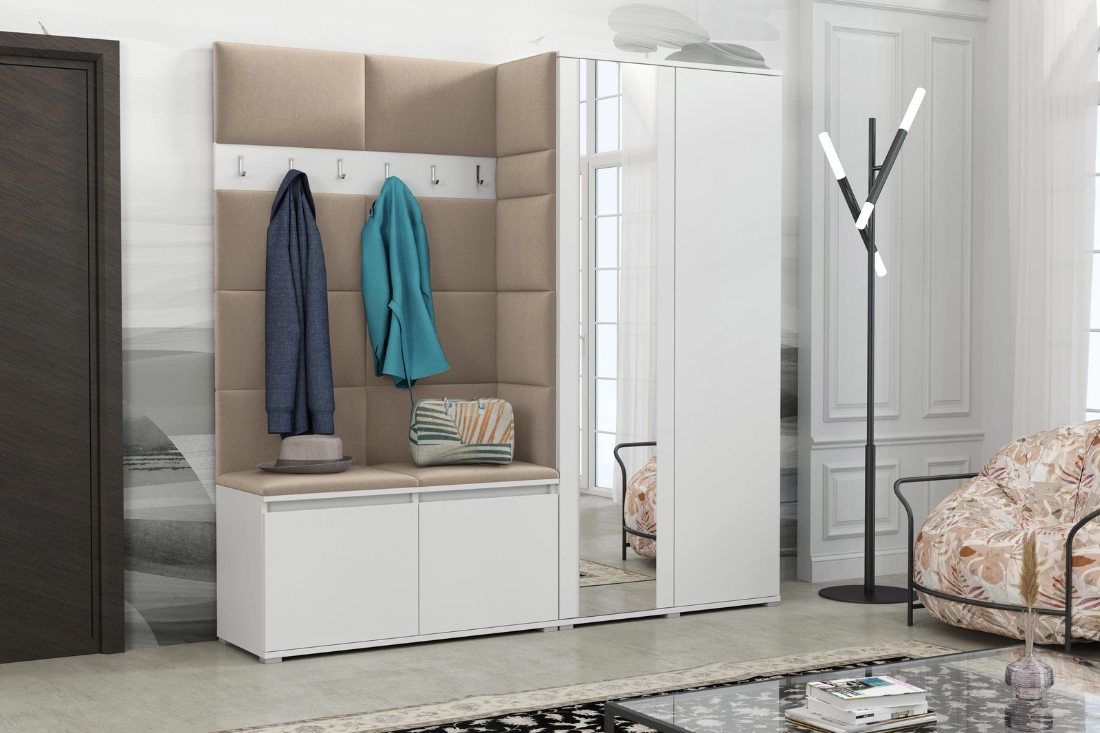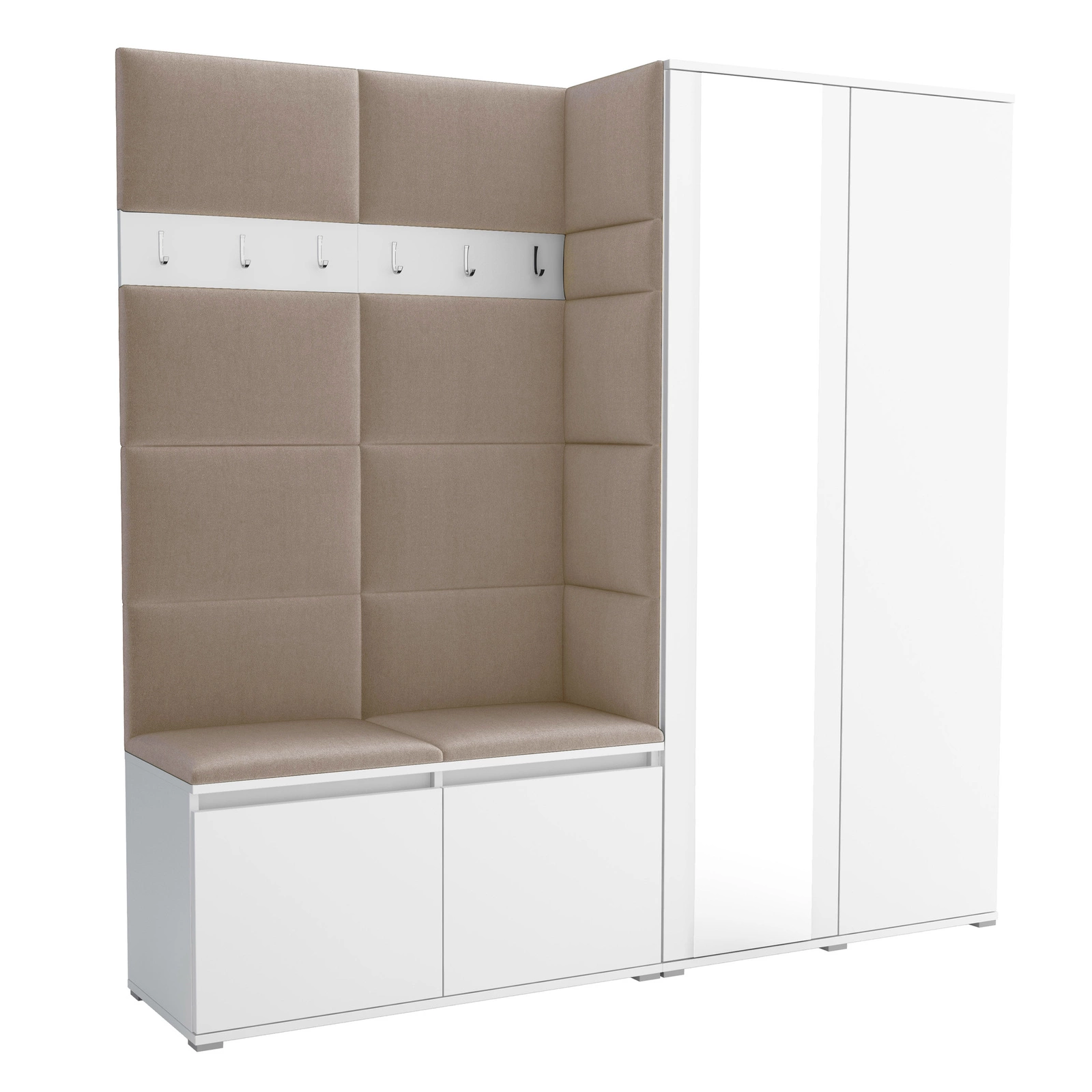 Tapicerowana garderoba Noris IV z lustrem - kolor biały + tkanina Trinity 04