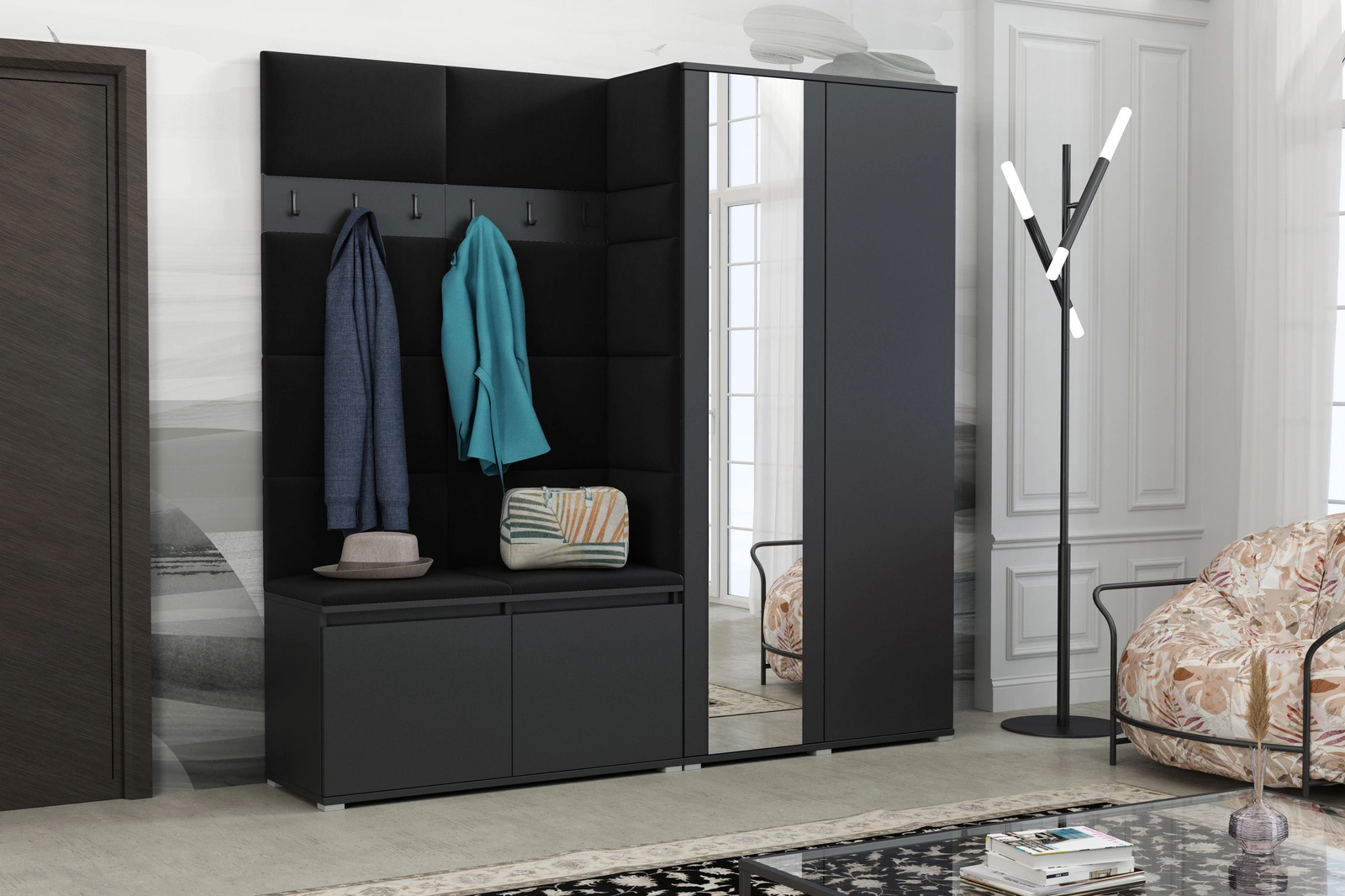 Opinie o Tapicerowana garderoba Noris IV z lustrem - kolor czarny + tkanina Trinity 16