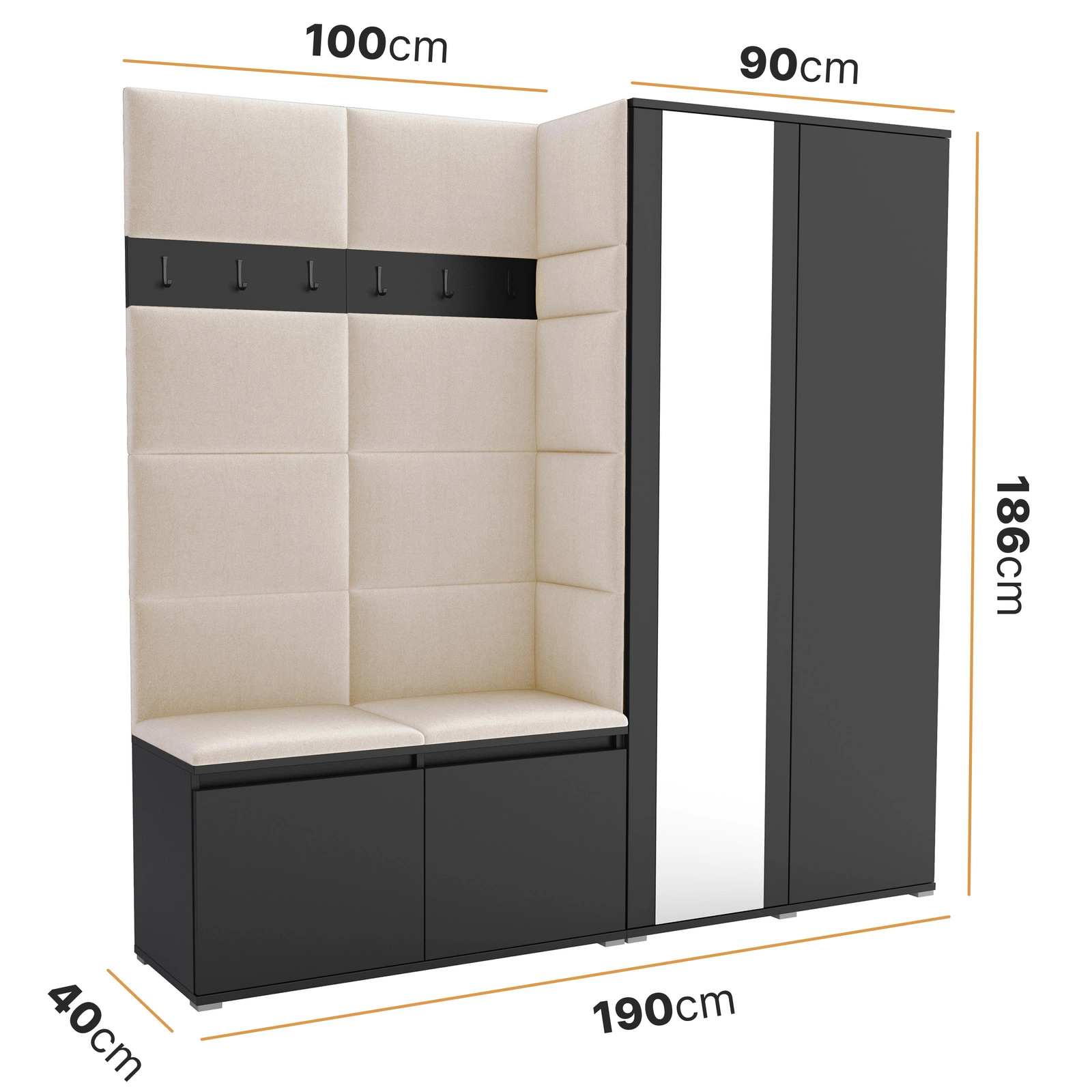 Tapicerowana garderoba Noris IV z lustrem - kolor czarny + tkanina Trinity 16