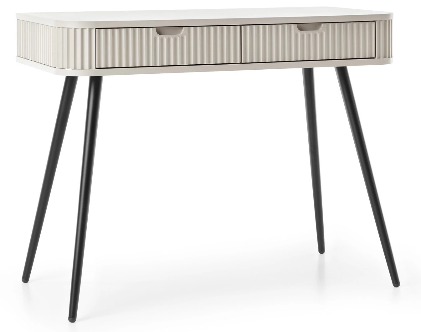 Toaletka Porto 103 cm z dwoma szufladą i ryflowanymi frontami w kolorze cashmere + czarne nogi