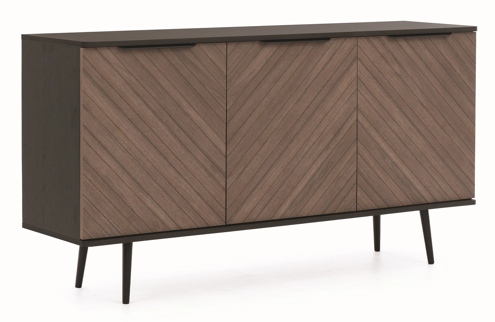 Nasza komoda z kolekcji Pinelli to połączenie elegancji, funkcjonalności i wyjątkowego wzornictwa. Wyposażona w troje drzwi, zapewnia dużą ilość miejsca do przechowywania. Metalowe nóżki oraz uchwyty nadają komodzie nowoczesnego wyglądu, podkreślając jej wysoką jakość wykonania.